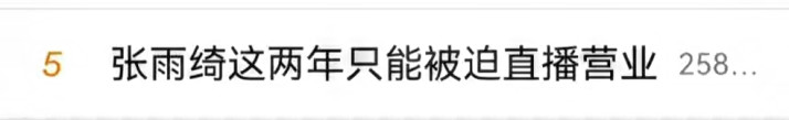 名声烂了,事业自然跟着凉。原本张雨绮要登上辽视春晚,银发造型的路透还引发过热议,结果网友纷纷跑到官方账号下留言抵制,官方扛不住压力,直接取消了她的表演内容,生怕被牵连。其实从近几年就能看出,张雨绮的资源早就大不如前,参加的节目都是边角料,没什么重要戏份,反而直播的次数越来越多,妥妥的被迫营业。