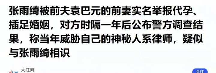 年关将至的娱乐圈,就像开了锅的沸水,一波接一波的大瓜砸下来,让人猝不及防。这次栽跟头的,是向来以“敢爱敢恨”立人设的张雨绮,被前夫袁巴元的前妻葛晓倩实名硬刚,插足婚姻、疑似代生的猛料接连曝光,甚至还牵扯出律师威胁素人的糟心事,昔日的虎系女星,如今人设彻底塌了个底朝天。