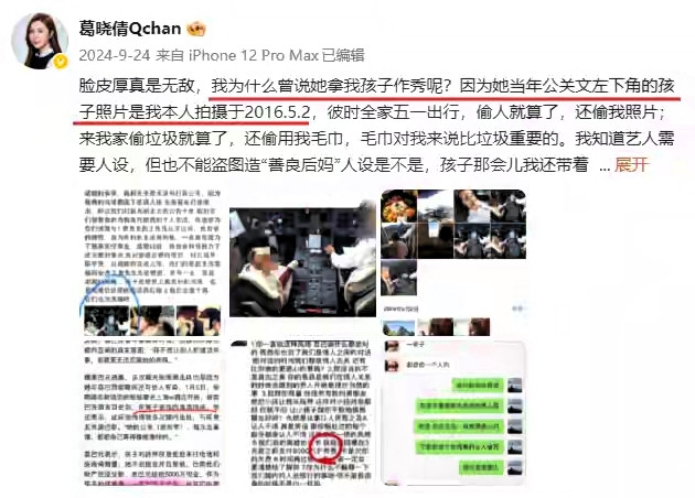 葛晓倩直言,当年她和袁巴元还没离婚,只是出了趟差,张雨绮就频繁往她和袁巴元的家里跑,甚至把行李直接放在两人的结婚照旁,明晃晃地插足别人的婚姻。更过分的是,张雨绮晒的带娃照,根本不是她拍的,而是葛晓倩自己带孩子时的照片,被张雨绮直接盗走,硬生生把别人的功劳揽到自己身上。